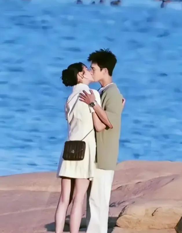 威海海边的路透图中,182cm的他从背后轻轻捂住她的眼睛,浪花拍打着脚边,夕阳将两人的拥抱染成温柔的金色。
